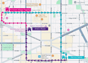 A: The walk is expected to last approximately 1 hour, including brief stops at Erna’s House and Patricia Handy Place for Women and a short closing gathering at the Flagship location of N Steet Village at 1333 N Street NW.